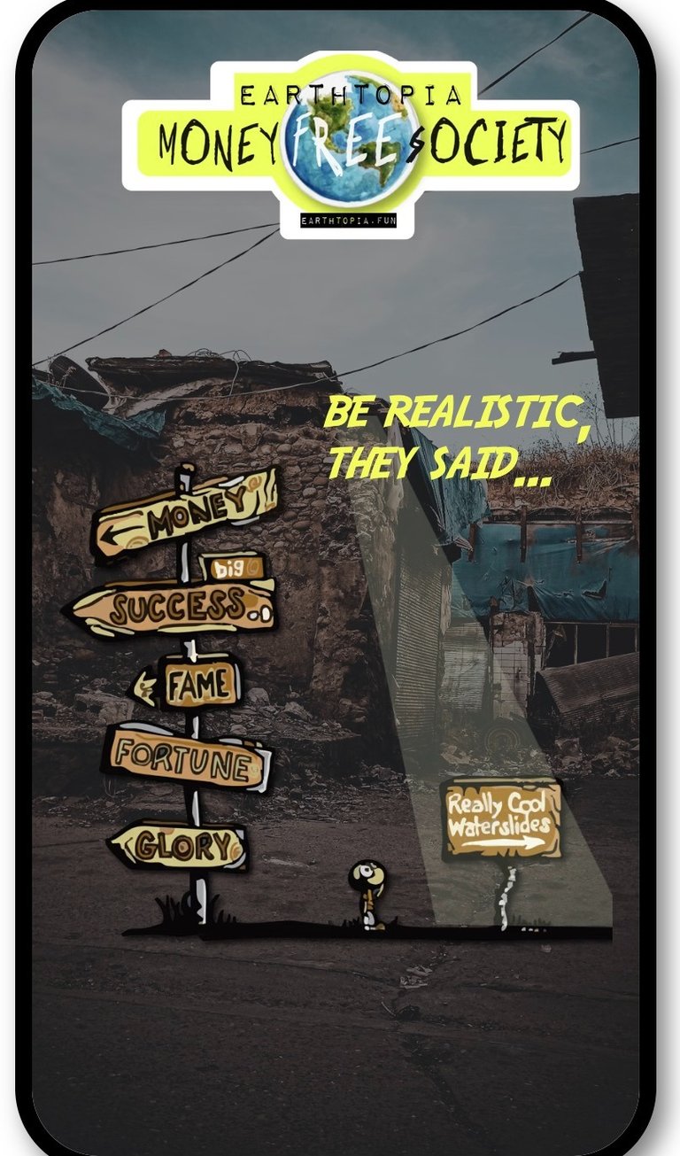 Earthtopia.fun is a series of fun challenges that leads us to a money free world.